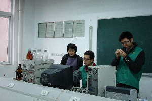 竞赛操作部分于12月20日上午8:30分在南京工业大学江浦校区笃行楼316室正式拉开了竞赛的序幕。北京普析通用分析仪器公司的代表张志杰经理和理学院朱红军副院长简短致辞后,选手们根据自己设计的方案,紧张而有序地开始了试样中农残的分离富集和标样、试样测定等工作。下面是竞赛中的花絮集锦。